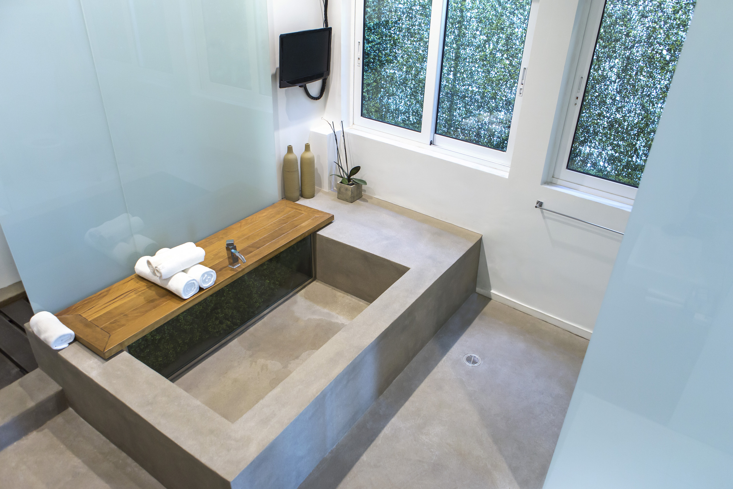 • Δάπεδα από μαρμαροπλακάκια στα μπάνια